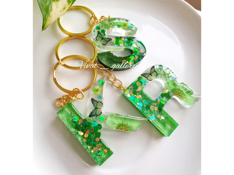 سرکلیدی _ سرسویچی حروف انگلیسی رزینی با گل سبز رنگ