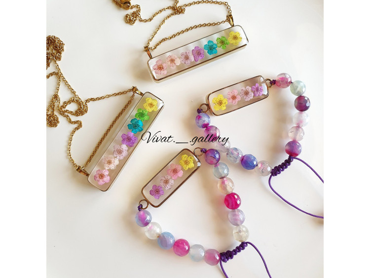 گردنبند و دستبند دخترانه رزینی با شکوفه های رنگی