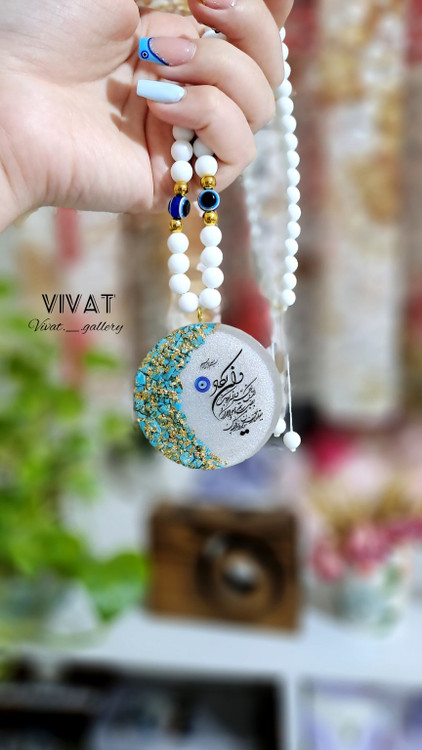 آویز آینه ماشین وان یکاد سنگ فیروزه و چشمنظر