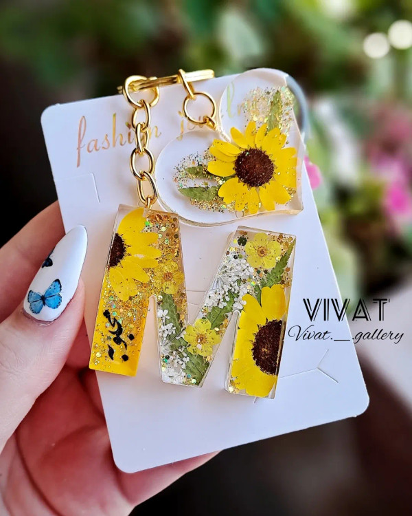 سرکلیدی رزینی با گل آقتابگردون لطفا حرف و اسم مدنظرتون رو در قسمت توضیحات ثبت سفارش درج کنید