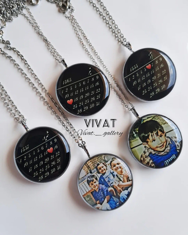 آویز عکس شخصی دوطرفه با عکس و تقویم تولد یا متن دلخواه قابل استفاده بصورت گردنبند و آویز آینه ماشین قابل بصورت جاکلیدی قابل با قاب و زنجیر استیل طلایی ساخته شده از قاب و زنجیر استیل نقره ای ۶۰ سانت ضد حساسیت