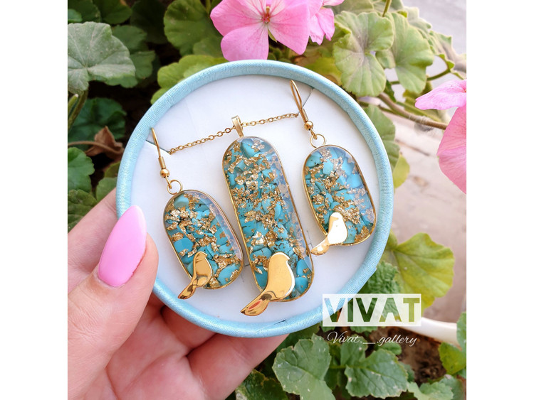 گردنبند و گوشواره مرغ آمین با سنگ فیروزه نیشابور