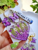 سرکلیدی پلاک ماشین با قلب بنفش رزینی