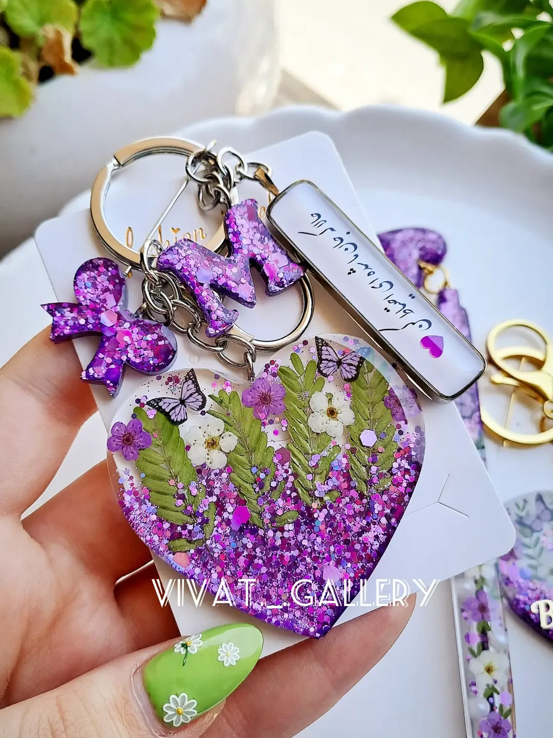 سرکلیدی پلاک ماشین با قلب بنفش رزینی