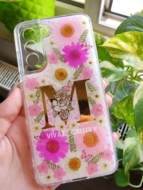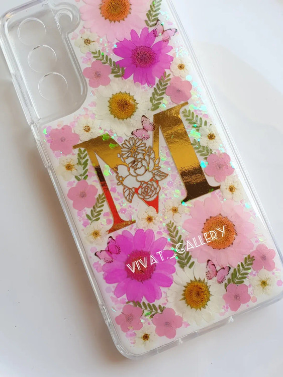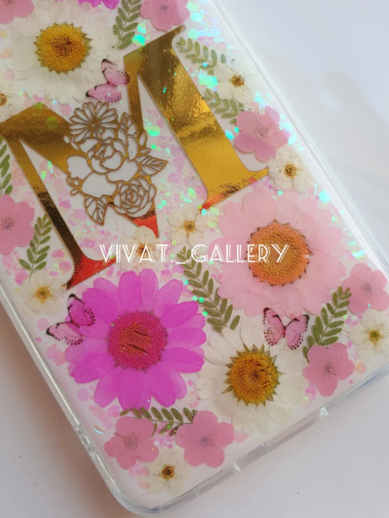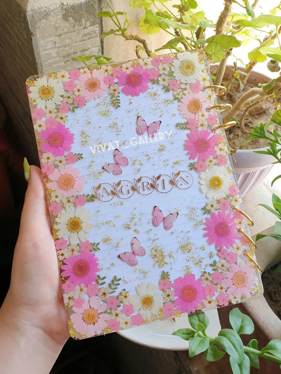 ست کامل شامل دفتر کلاسوری با برگه های قابل تعویض سایز A5، قاب گوشی مناسب برای گوشی های سامسونگ، آیفون و شیائومی، خودکار با مغزی قابل تعویض و سرکلیدی با گلهای طبیعی جاودان شده.